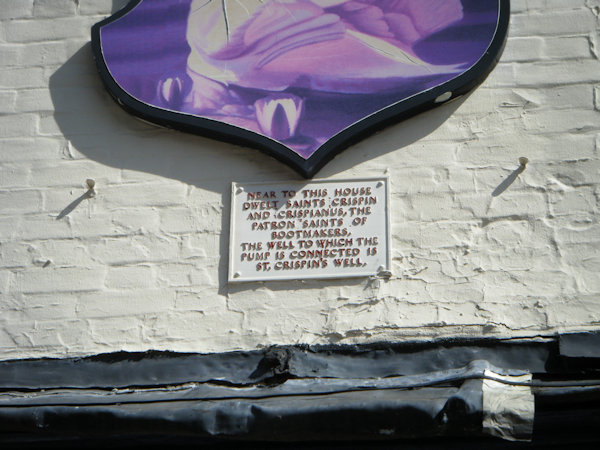 It appears that this statement was either misinterpreted, or the suggestion enthusiastically endorsed, by whoever had the aforementioned plaque erected at the site. Although I have not been able to pinpoint when exactly this plaque was commissioned, it must have been put up at some point after 1873; it seems to be this inscription which has, most probably inaccurately, given the Cross Well the title of "St Crispin's Well", which, therefore, has only been applied to the site for the last century or so. The contents of the plaque are as follows: