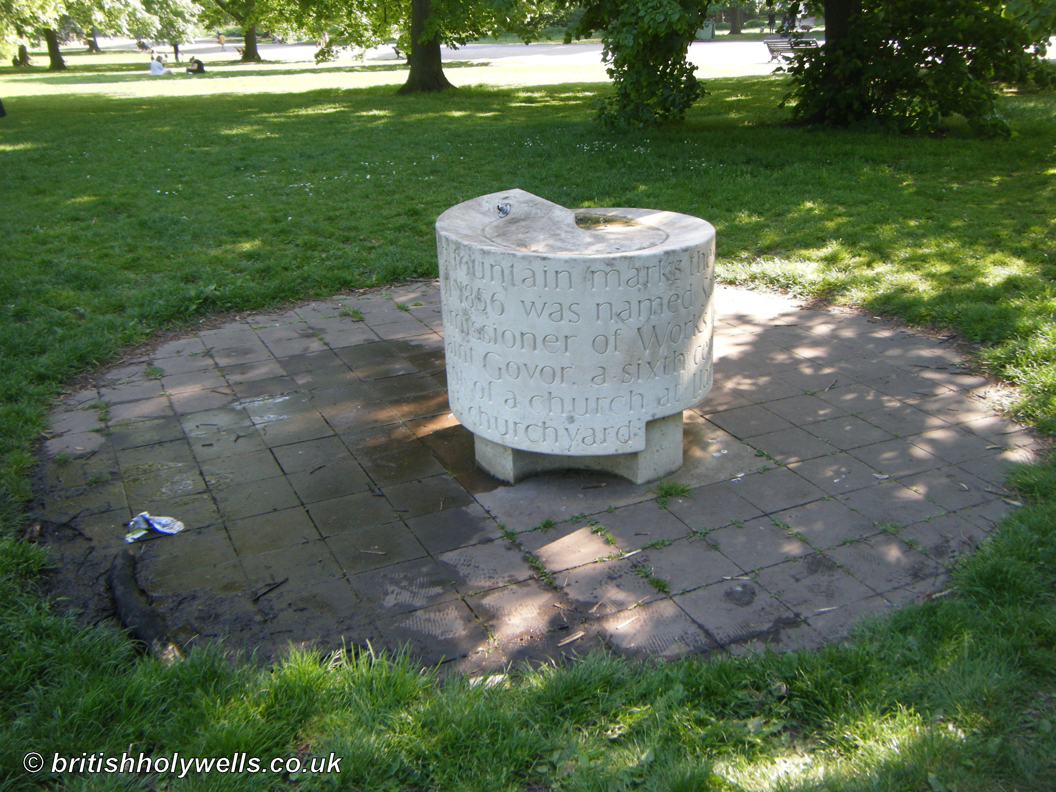 This discovery seems to have caused a rapid decline in the drinking fountain's popularity, and The Lancet reported in February, 1897, that "the saint has deserted the shrine", and "the water, it is to be feared, has lost its healing efficacy". The Victorian drinking fountain itself remained unchanged until very recently, when it was replaced with the unusual circular structure that exists today. The original fountain built by Sir Benjamin Hall consisted of a leaden spout, in a small sunken enclosure, reached by several stone steps. "St Govor's Well, 1856" was reputedly inscribed on the structure. It was surrounded by iron railings, and waste water issued into a stone basin beneath the spout. Perhaps the only alteration that was ever made to the structure before it was demolished was the installment of a metal cup, for the use of nursery maids and children, which appeared at the fountain after the elderly lady resigned from her post. Luckily, a considerable number of illustrations, and even one rare photograph, of the Victorian structure exist: