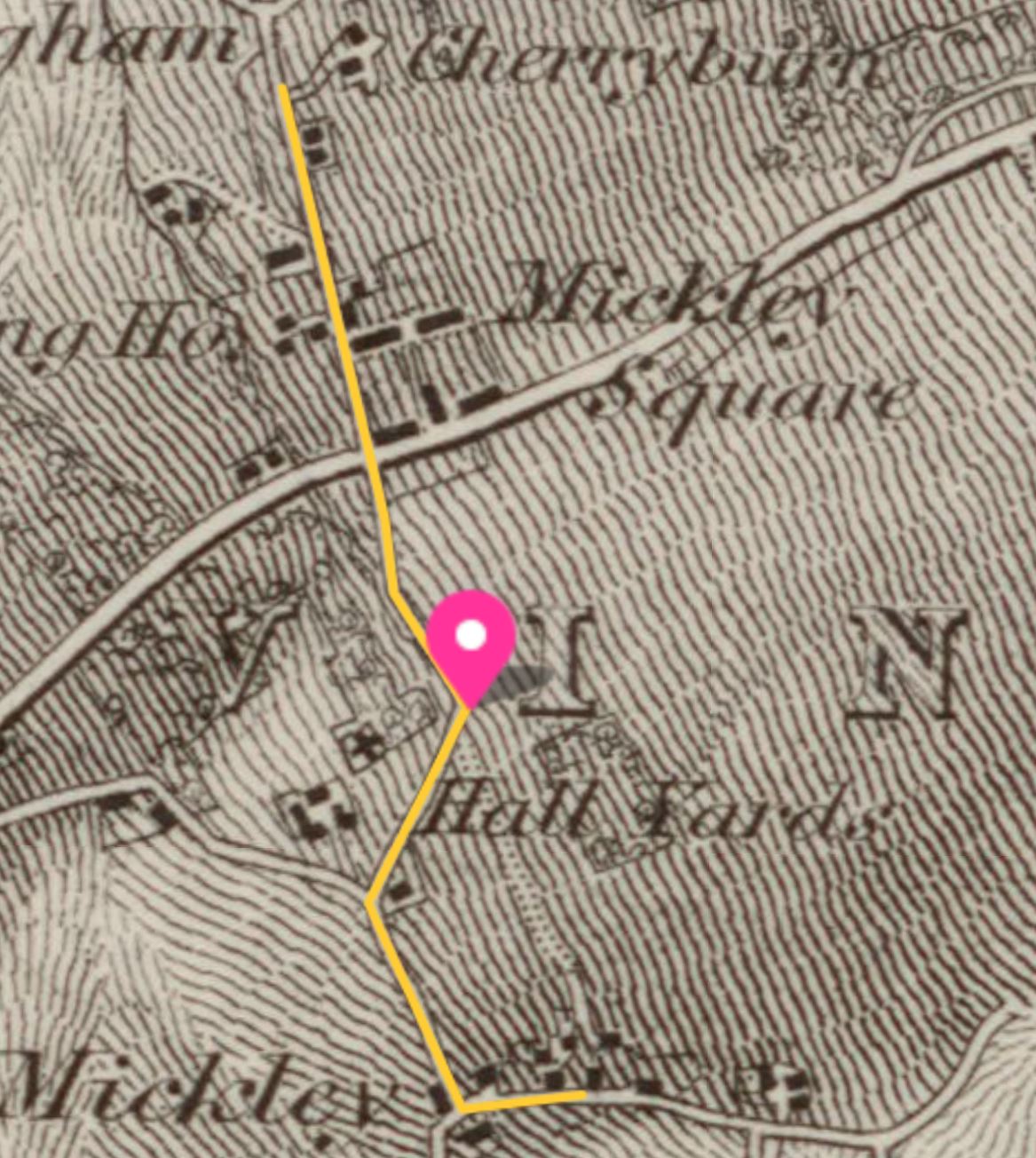 Clearly, the Holy Well was located partway between Cherryburn and Mickley School, directly on the route that Bewick would have taken as a schoolboy during the 1750s. Unfortunately, by the time that the first Ordnance Survey maps of the area were produced, roughly a century later, multiple schools had been set up within the parish. On the 1865 6-inch OS map of Mickley, two different establishments are marked: a "National School" situated near to Cherryburn, and a second school, described simply as "School (Boys & Girls)", located within the village itself. Nevertheless, it is clear which school Bewick would have attended, as so-called "National Schools" were set up during the 19th century to improve education for the poor, meaning that Mickley's "National School" cannot have been the one that Bewick was referring to. Instead, this suggests that he must have been a pupil at the school located within Mickley itself, which is confirmed by David Croal Thomson's statement (included in 1882 in The Life and Works of Thomas Bewick) that Ovingham School was "about a mile from Cherryburn", just, according to Thomson, "like Mickley" School. As the other school marked on Ordnance Survey maps is located almost exactly a mile from Cherryburn, there can be no doubt that this was the institution to which Bewick referred.