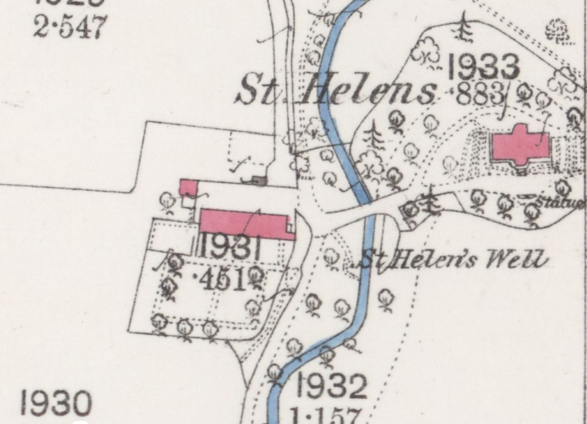Nonetheless, the site's dedication to St Helen remained well-known for the next few centuries, with its existence noted in both the Old Statistical Account of Scotland, published in the late 18th century, and the New Statistical Account, compiled in 1845. Indeed, the spring was both marked and named on Ordnance Survey maps until 1899, when it utterly vanished from OS maps; these maps have never marked St Helen's Well since. The fact that the spring was noted on the 1889 OS map of Darnick, but not on the next edition, published in 1899, suggests that the well was capped at some point within the last decade of the 19th century. Interestingly, the remarks of OS surveyors indicate that the spring was capped so that it could be piped to St Helen's, a nearby house that undoubtedly takes its name from the well:
