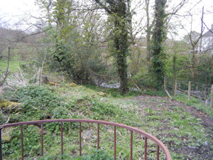In 2011, the well was visited as part of the Cadw Holy Wells Project, but they were unsuccessful in locating the site, and assumed that the dry gully that runs next to Pont Wnda was the site of the spring. When I visited Ffynnon Capel Gwnda in the April of 2025, the well was easily seen from the bridge. It was producing a considerable amount of water, which issued beneath the roots of a tree into the river, and appeared to be in relatively good condition. There were also visible traces of what could once have been a stone structure, although these may just be from the nearby pile of assorted rubble. Despite the fact that the well is not marked on modern Ordnance Survey maps, historic maps show the well, with a path leading to it from the roadside.