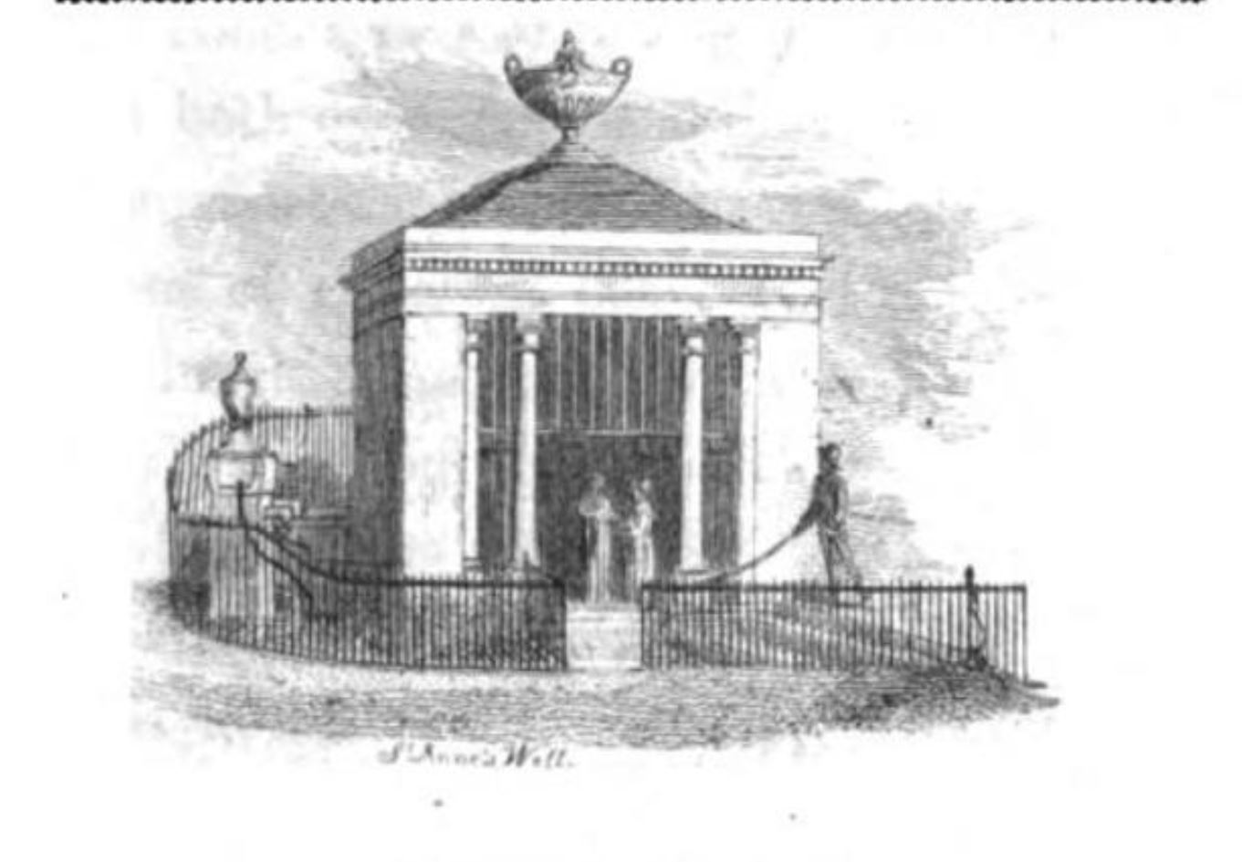 In 1852, a new structure was built on top of St Ann's Well, the earlier structure that it replaced presumably being that which was built by Thomas Delves in 1709. This, however, did not last very long at all, as it was completely replaced again in 1895; the drinking fountain from 1895 is depicted on this Victorian postcard: