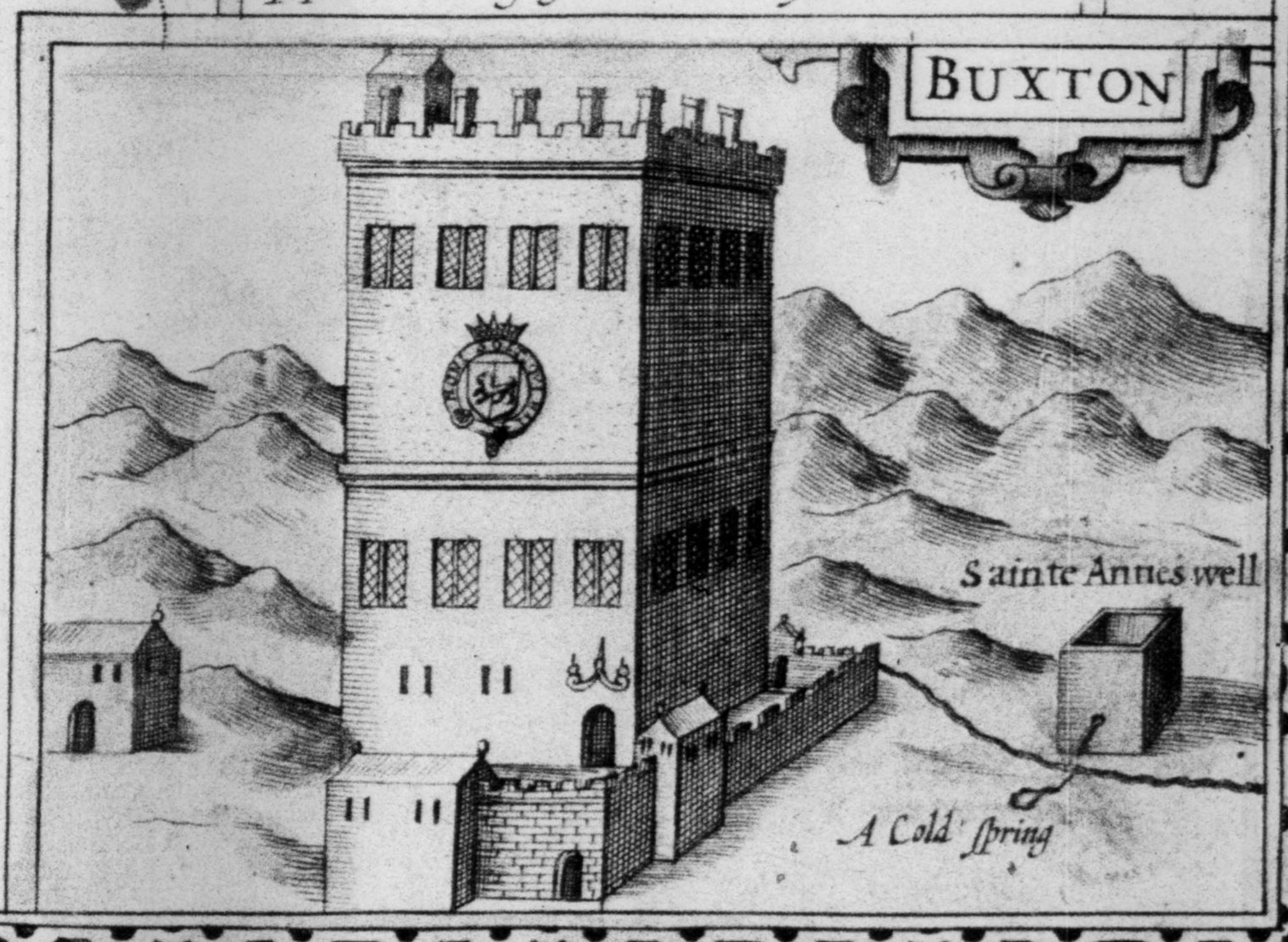 Shortly after this, John Speed published the only surviving illustration of both St Ann's Well and Buxton Old Hall in his Theatrvm Inperii Magnae Britanniae (1616). It clearly depicts the old Roman wall that once surrounded the bath: