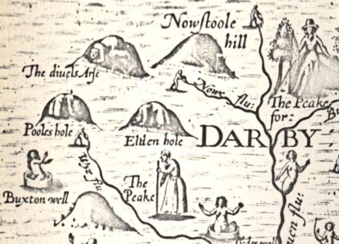 The 17th century saw, if nothing else, a large amount of poetry written about the well, and, in 1622, Michael Drayton's Chorographicall [sic] Description of all the tracts, rivers, movntains, forests, and other Parts of this Renowned Iſle of Great Britain (which he had "Digeſted into a Poem"), included both a versed description of Buxton and a map of Derbyshire that marks "Buxton Well"; it is only really the map that is of any interest: