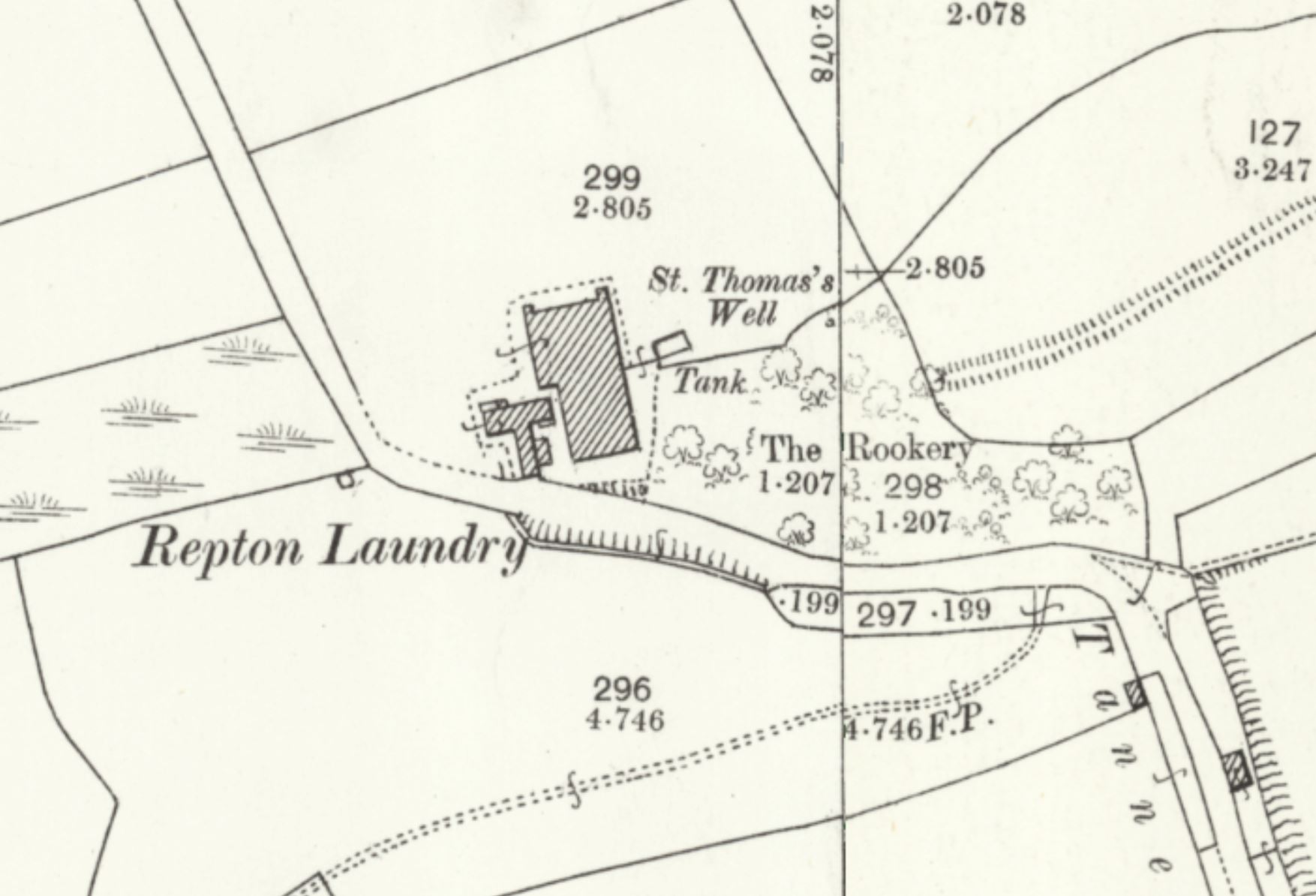 Although it is not clear which St Thomas this holy well was, historically, dedicated to, it is evident that the spring got its name from an association with Repton Priory. The priory was founded in 1153, as an Augustinian establishment, and placed under the government of nearby Calke Priory. Despite its somewhat lowly status, the institution was one of Derbyshire's most popular destinations for pilgrims, boasting the famed shrine of St Guthlac, and several chapels dedicated to a variety of saintly figures. Amongst these assorted chapels was, according to Robert Bigsby, writing in his Historical and Topographical Description of Repton (1854), a chapel of St Thomas, the existence of which was recorded at the dissolution of the priory in around 1538. Whilst this may simply be a coincidence, owing to the fact that St Thomas was a popular medieval dedication, it does establish a possible link between the priory and the well, and the record is suitably ambiguous to allow for speculation: it is plausible, and indeed quite probable, that this "chapel of St Thomas" was actually a medieval well-chapel, located directly over St Thomas' Well.