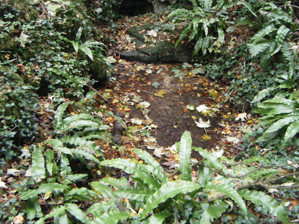 When I visited St Edward's Well in October 2025, I did not inspect the site of the buildings, but the rest of the "pleasure gardens" appeared to be in good repair. The well itself is contained within a grotto, probably of an early 19th or late 18th century date, that was very clearly built as part of "The Retreat", and which was in a good condition. The spring was producing a decent quantity of clear water, which issued from the rockface into a shallow, roughly rectangular pool that was clearly not used for bathing of any kind, but which could originally have been used for collecting the water.