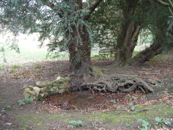 The fact that St Peter's Spring emerges from beneath the roots of not one but two old yew trees indicates that the well's "holiness" dates from at least the medieval era, but probably from even earlier. The earliest known reference, however, to the site's existence does not even mention the well's dedication to St Peter, but instead calls it the "Nine Springs". For this reason, it has been suggested that the well may have become known as St Peter's after the demolition of the parish church, but to me this seems very unlikely. Instead, I think that it more probable that the well simply had more than one name (like many holy wells); perhaps the more secular one, "Nine Springs", was preferred after the Reformation. This early reference dates from 1712, and can be found in John Morton's Natural History of Northampton-shire, in which the site is actually mentioned twice. Morton implied that the spring had very recently been converted into a sort of bath-house or folly: