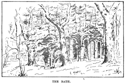 In about 1848, during the remodelling of a portion of the grounds, a quantity of sculptured fragments were dug up in the vicinity of the bath. Faith, Hope, and Charity, figures that probably at one time decorated the formal garden of the 17th century, were easily distinguished. The chief pieces were kept above ground until the frost and other agencies destroyed them. The rest were covered over again. |