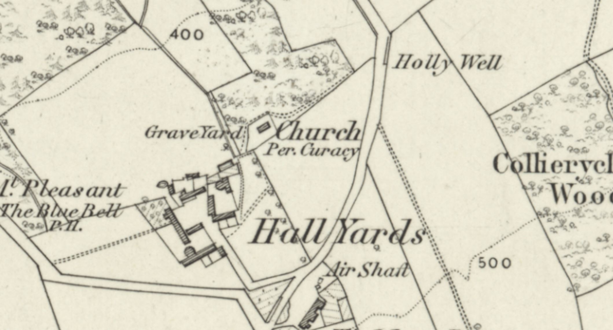 It seems quite likely that, by the 1860s, the name "Holy Well", or "Haly Well", as Bewick described it, had become corrupted into "Holywell", pronounced "Holly Well", which would explain why OS surveyors mistakenly labelled it as they did. Indeed, there is strong evidence that "Holywell" had become, by the late 19th century, the standard way of spelling the site's name: at some point after 1865, as later OS maps show, a group of houses were constructed nearby, at around NZ0707861750, called "Holywell Terrace".