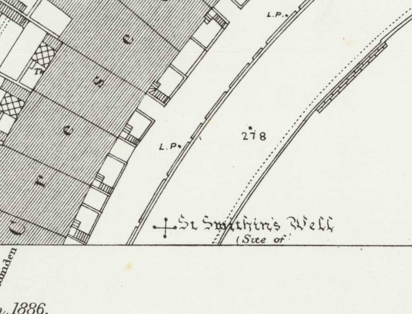 Apart from the fact that it was an essential water supply in medieval times, little is known of St Swithin's Well. It appears that the spring was not associated with any particular traditions, which is unsurprising, given its mostly practical usage.