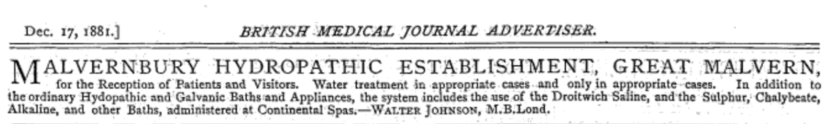 Although the "Malvern Water" may not have been as popular in the 1700s as it became in the 19th century, a small bottling industry had developed around the Holy Well. It was not just Dr Wall who bottled water at the spring; the drink was also sold by a Mr Owen, whose bottling company was afforded a brief advert at the end of Richard Russel's Dissertation on the Use of Sea Water in the Diseases of the Glands, which was published in 1790: