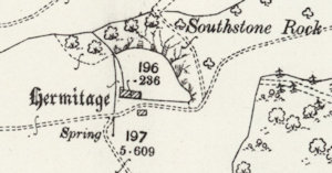 Today, what must once have been St John's Well is a powerful spring that issues out of the hillside beneath a large tree (not a yew) about twenty or thirty metres south of Southstone Rock. There is possible evidence of a construction around the spring, though that is not definite. Although the hillside was extremely overgrown when I visited in November 2024, it has only recently become a forested area, so access would once have been much easier.