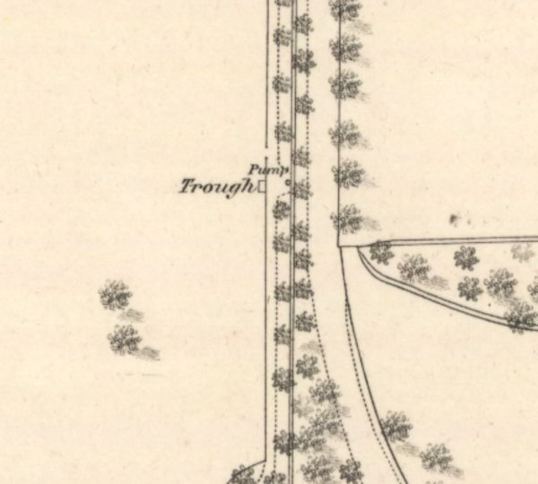 A pump and trough marked roughly at NT2527971464 on the OS town plan, roughly 50 metres from the site of the chapel. This was marked on the 1881 town plan, but was later destroyed and does not survive today.