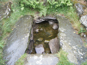 The earliest reference to Ffynnon Gelynin that I am aware of dates from 1739, and takes the form of the church terrier (an inventory of the church's possessions). According to Sabine Baring-Gould and John Fisher, writing in their Lives of the Saints (1908), this document mentioned that, "in the South West of the Churchyard", there is "a fine Spring-well, and ye House above it is about four yards in breadth and five in length, and in good repair". Although it is tempting to assume that the described well-house was of a medieval date, an undated (but probably 18th century) document referred to by the Royal Commission, in their notes about Llangelynin, records that the date "1622" was once inscribed on a stone "in ye Wall of the House above the Well"; this suggests that this well-house was either built in the early 1600s, or that it was restored then. Perhaps the latter option is the most likely, as the Royal Commission also noted that the stone seats and slabs surrounding the well itself were almost certainly medieval, so it seems that only the upper parts of the structure have been rebuilt.
