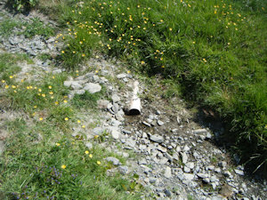 When I visited the site in the May of 2025, the spring was still producing a decent quantity of water. The well was housed in a slightly sunken brick chamber, covered by a stone slab, from which the water was piped to a small ditch several metres down the hill, where it created a small pool. Intriguingly, there were a number of relatively large stones scattered around the brick chamber; perhaps these once formed part of an older structure.