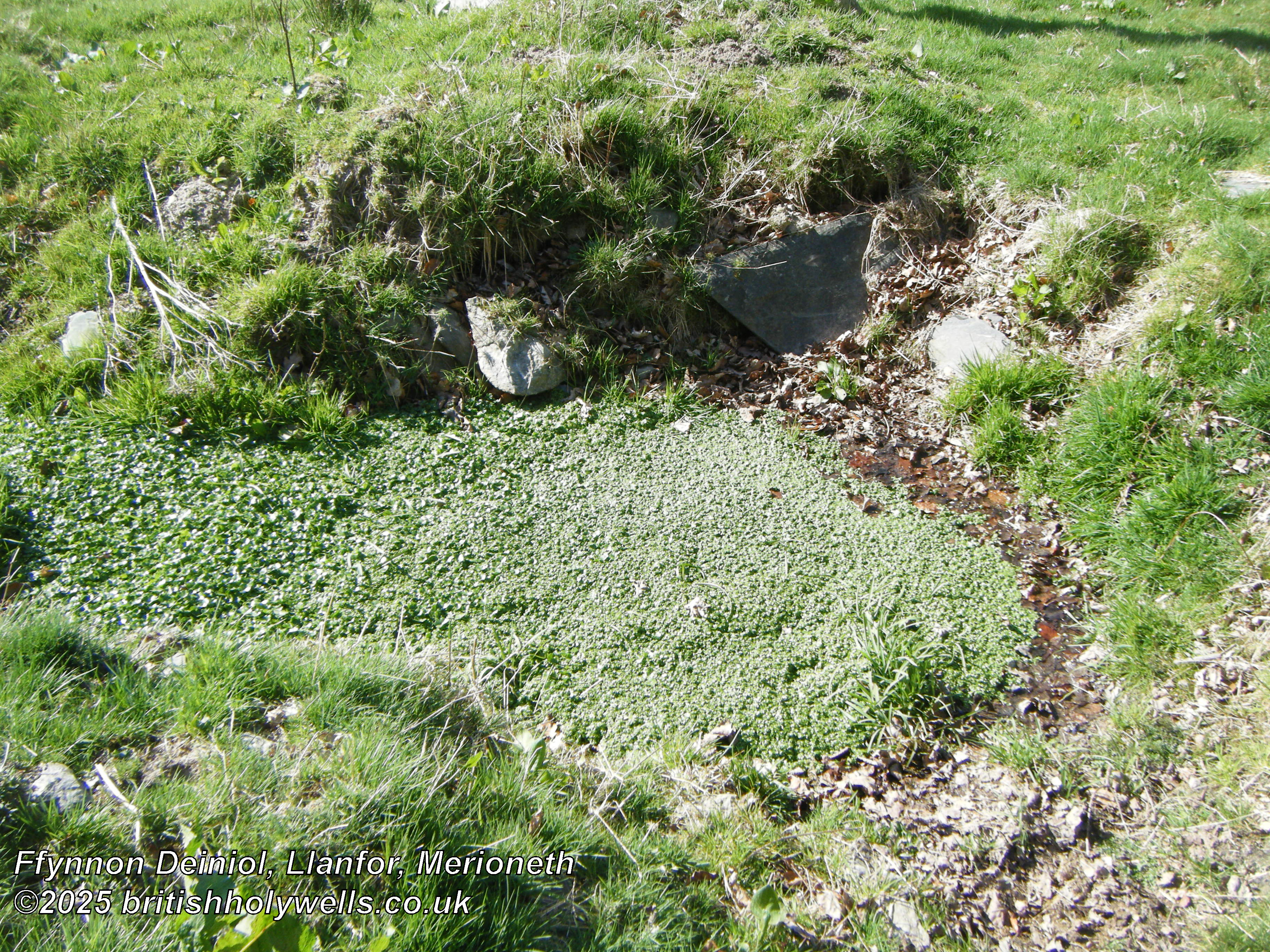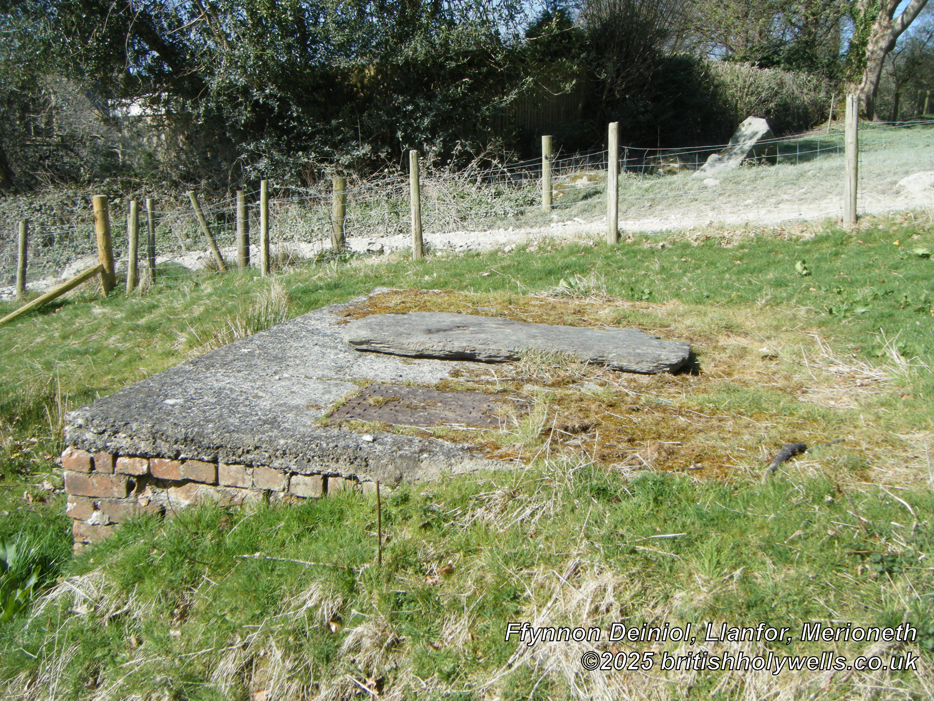 Today, Ffynnon Deiniol is one of few wells that retains what may be its original structure. It is probable that the stone structure that surrounds the spring is, in the most part, medieval (minus the concrete water-proofing, of course). It seems that this three-sided stone construction was not covered with a large slate slab, as it is today, when the Royal Commission visited the site in 1913; this would explain why they called it an "enclosure" and mentioned bathing. When I visited the well in the April of 2025, the well was dry, and it appeared that the spring's water was being pumped off elsewhere by a large brick and concrete structure that exists just a few metres south of the well. Inriguingly, around the pond next to this were scattered the remains of several large, and clearly old, slate slabs; it is possible that they may have once formed a bathing pool of some description around this pond.