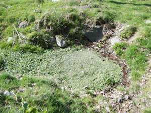 This spring rises in a rough stone enclosure about 40 yards north-west [this should be "north-east"] of the churchyard, in a field called 'Cae'r ysgubor.' The enclosure, which measures 2 feet 3 inches by 3 feet, could not have been used for bathing purposes. It is not now commonly called 'Ffynnon Daniel,' but is known as the old well of the parish. - Visited, 15th May, 1913 |