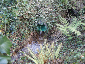 When I visited the site of Ffynnon Gurig in the April of 2025, no indication of its former existence could be seen on the road surface itself. However, there was a large plastic pipe protruding from beneath the tarmac, which deposited a constant issue of clear water into the stream running beside the road; as there are no other possible sources for this water, it is almost certainly the outflow from the now covered spring that was once Ffynnon Gurig.